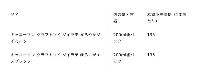 「ソイラテ まろやかソイミルク」「ソイラテ ほろにがエスプレッソ」