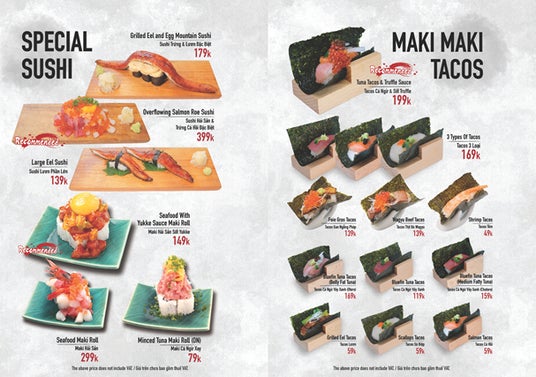 スペシャル寿司(79,000ドン~ ※443円~)等多彩なメニューを取り揃える
