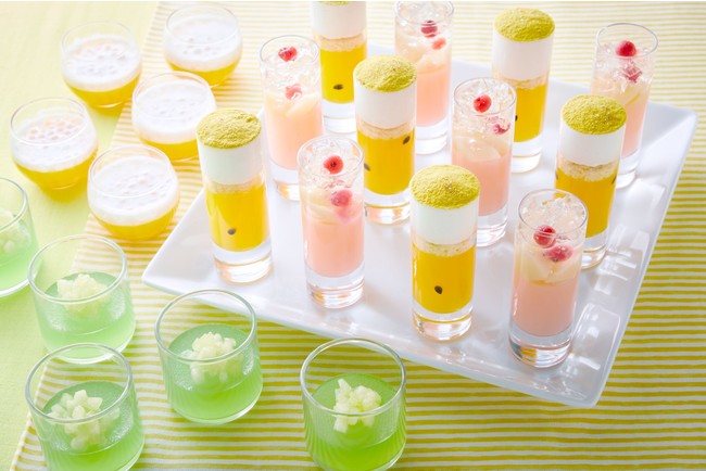 また、滑らかなゼリーとアクセントに乗せたタピオカの異なる食感が愉しい『マンゴーゼリー』や『マンゴーシャーベット』、イタリアンスイーツ『カッサータ』など、暑い日にピッタリのグラススイーツもお目見え。