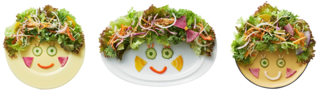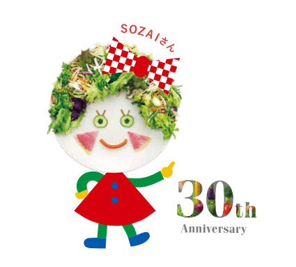 SOZAIさんとは、RF1が30 周年を迎えた今年5 月に誕生した、緑の30 品目サラダでできたキャラクター。今年の野菜の日は、お気に入りのお?にSOZAI さんを盛り付けてみませんか?緑の30品目サラダにご自宅の野菜も加えてOK!楽しく盛り付けておいしく食べて。野菜が好きになるきっかけになれば嬉しいです。夏休み中のお子様もぜひ!