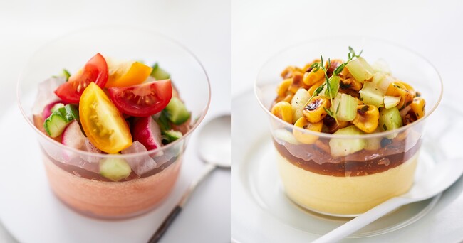 (左)トマトのサラダムース (右)とうもろこしのサラダムース