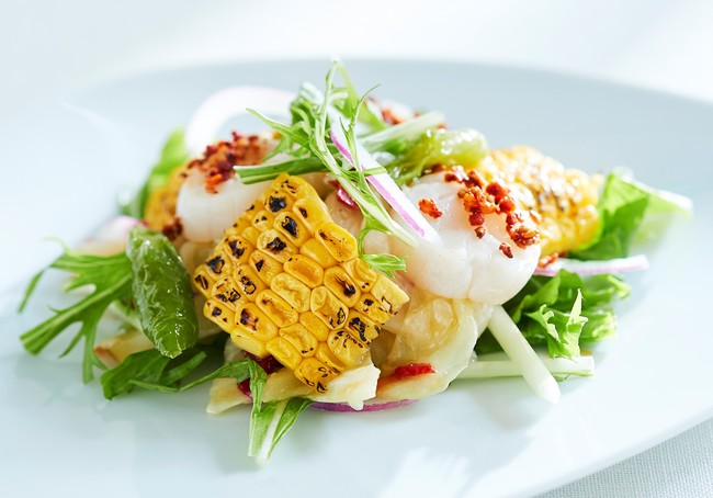 帆立と焼きとうもろこし「恵味」のサラダ 焦がしバター醤油