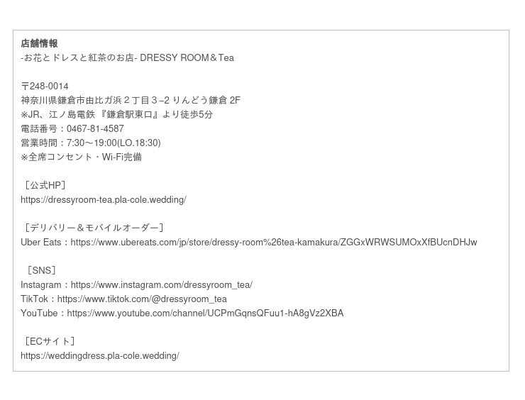 公式HP:https://dressyroom-tea.pla-cole.wedding/