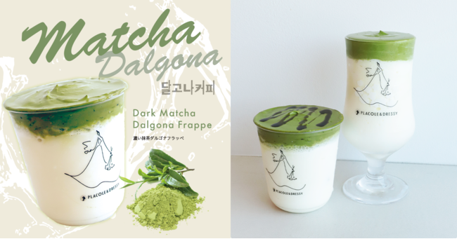 『個性が煌めく魔法の言葉』 "100人の人生に100通りに煌めく魔法をかける"をテーマに創設された古都鎌倉発のラグジュアリーブランド、PLACOLE&DRESSY(プラコレ&ドレシー)がプロデュースするカフェ&バー、『お花とドレスと紅茶のお店 DRESSY ROOM&Tea』から8月15日より新作フラッペが登場。大人気のシルキィピーチフラッペとバナナフラッペに次ぐ第三弾は抹茶好きにはたまらない、『濃い抹茶ダルゴナフラッペ』。