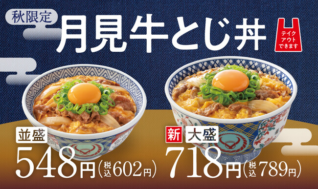株式会社吉野家(代表取締役社長 河村泰貴、本社:東京都中央区、以下吉野家)は、玉子を月に見立てたお月見商品『月見牛とじ御膳』648円(税込712円)と『月見牛とじ丼(並盛)』548円(税込602円)を、8月22日(月)11時から秋季限定で全国の吉野家店舗※で販売開始しました。テイクアウトでのご利用も可能です。