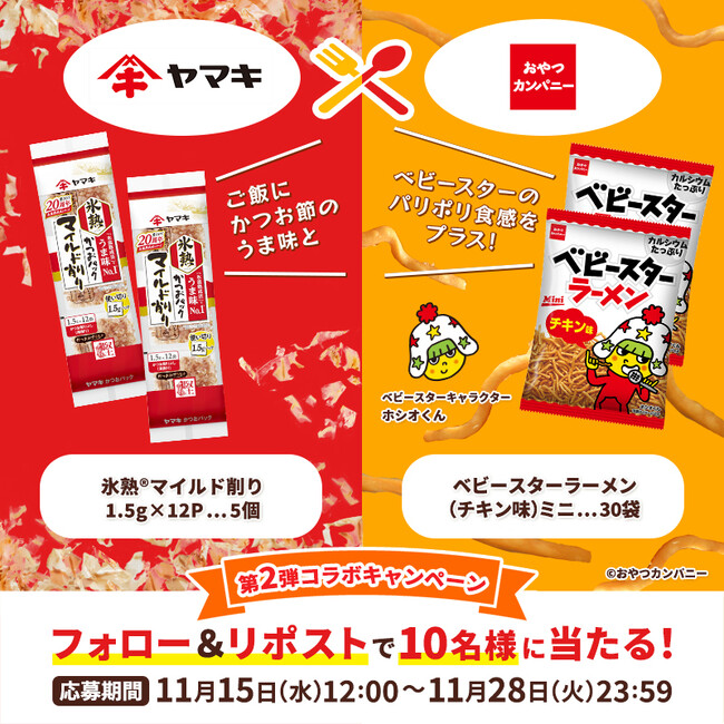 【第2弾】ヤマキ「氷熟(R)マイルド削り」 × (株)おやつカンパニー「ベビースターラーメン(チキン味)」