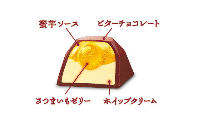 ・蜜芋ソースとさつまいもゼリー、ホイップクリームをビターチョコで包んだ大粒チョコレート