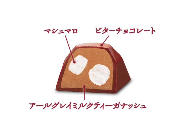 ・アールグレイが華やかに薫るミルクティーガナッシュとふんわりとした食感のマシュマロを合わせ、マシュマロミルクティーを表現