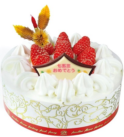 「七五三苺のショートケーキ」は、不二家定番の「苺のショートケーキ」に、七五三チョコプレートと栗のモチーフが付いたローソクを飾りました。お子様の健やかな成長のお祝いにぴったりなショートケーキです。