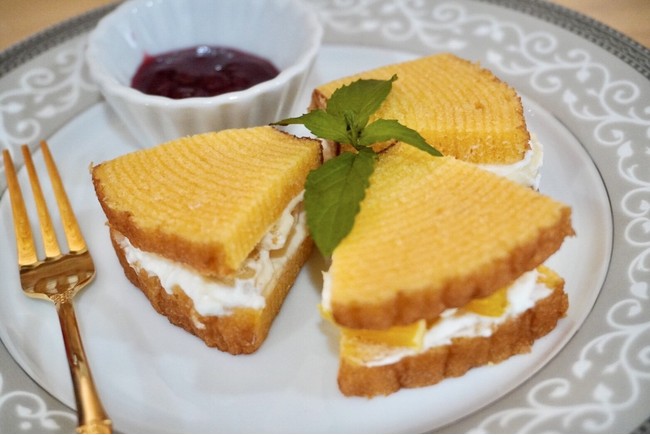知っていましたか?バウムハウス樹凛がある栃木県は、いちご、メロン、巨峰などさまざまなフルーツが栽培されることから、フルーツ王国と呼ばれています。そんな私たちが提案するのは、昔懐かしいフルーツサンド。穂乃香をスライスして生クリームをたっぷり塗ったら、お好みのフルーツを置いていくだけ。栃木のフルーツを使うのがおすすめです。果汁溢れるフルーツとバウムクーヘンのマリアージュを、好きなだけ楽しんでくださいね。(使用バウムクーヘン:穂乃香)