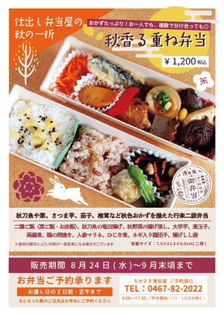 まん福ホールディングスグループのちがさき濱田屋(株式会社浜田屋 本社:神奈川県茅ヶ崎市、代表取締役社長:戸倉大輔、以下 「濱田屋」)は、8月24日(水)より、濱田屋全店舗にて秋の新メニュー「秋香る重ね弁当」1,200円(税込)の発売を開始いたします。