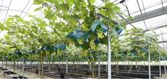 近年、農家の人手不足やマスカットの品種改良により「陸乃宝珠」の基となる“マスカット オブ アレキサンドリア”の栽培が縮小されています。そこで、2015年に農業生産法人”源 吉兆庵農園”を設立し、自社でもマスカットを栽培をすることで安定した素材を確保することが可能となりました。また、和菓子の素材を自社栽培することで商品開発・商品づくりの可能性を広げることを目指しています。