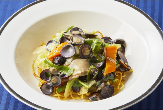 小川原湖で採れたしじみの旨味が凝縮した餡に、香ばしい麺を絡めてお召し上がりください。