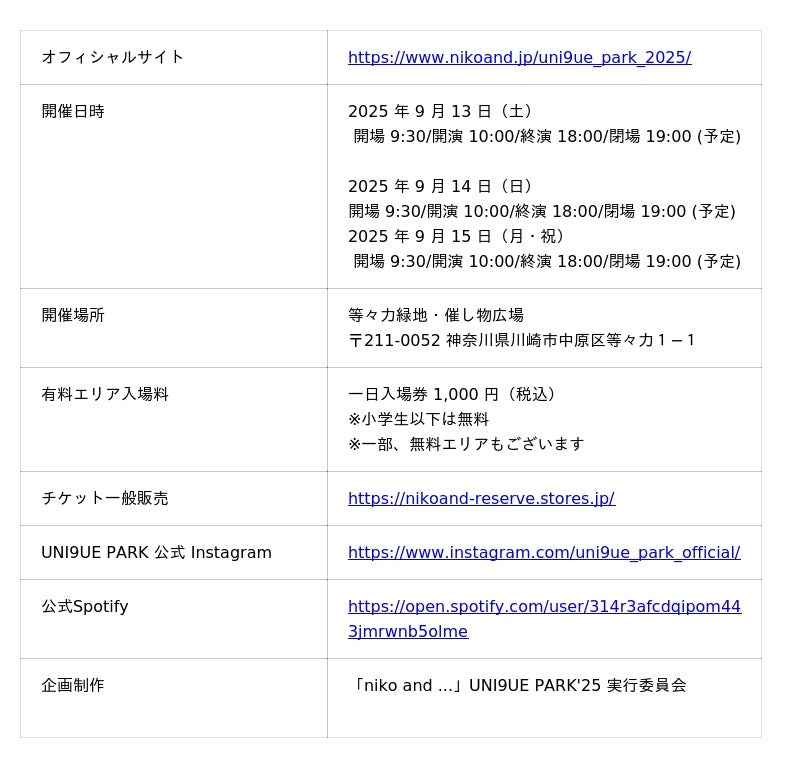 ■「niko and ... UNI9UE PARK MARCHE’25」詳細