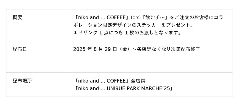 ■「niko and ... COFFEE」と「A WORKS」コラボレーション概要