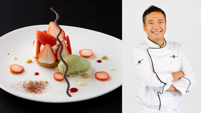 「Toshi Yoroizuka」オーナーシェフの鎧塚俊彦氏監修による特別なスイーツプレートを提供いたします。平均糖度15度以上を誇る、宮崎市にある『ひなたいちご園』の春いちごを使用。クレームピスターシュを包み込んだいちごとグラスピスターシュが彩る贅沢プレートをご堪能ください。