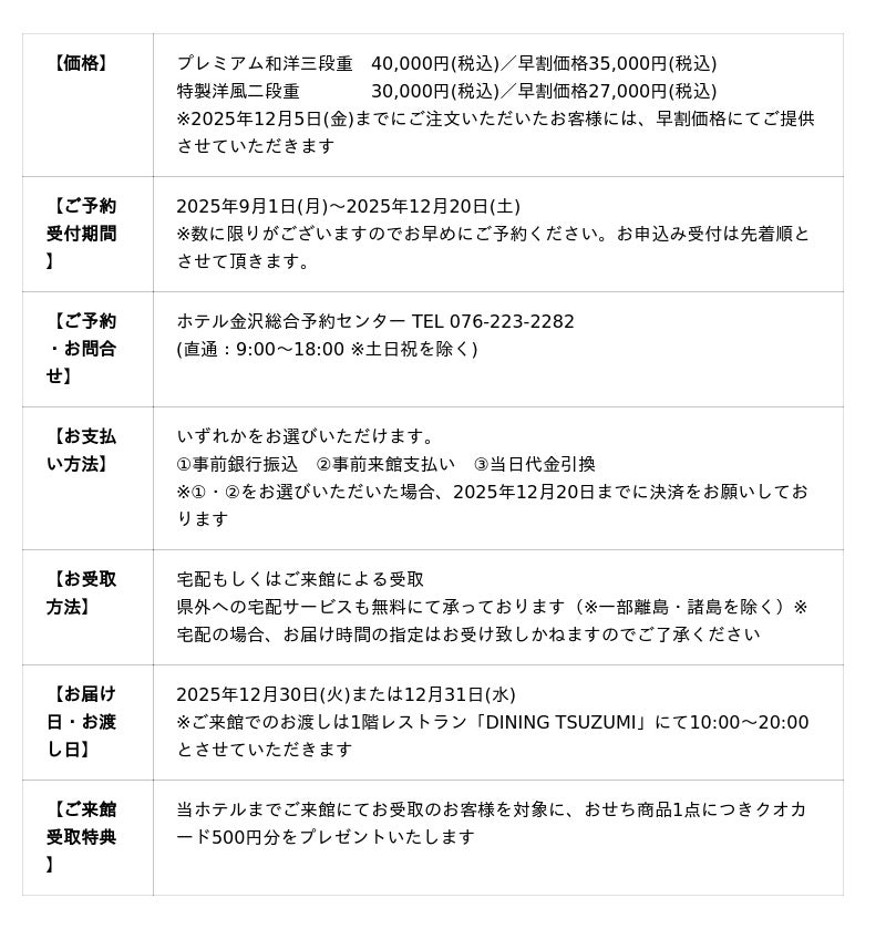 ■ホテル金沢「金沢おせち2026」ご予約受付〈概要〉