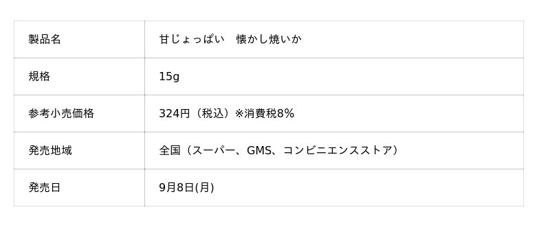 株式会社なとり(本社:東京都北区 会長兼社長:名取三郎)は、「甘じょっぱい 懐かし焼いか」を