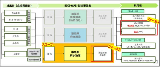 本事業では、これまで産業廃棄物として扱われてきた排水油泥を回収・処理し、FAME(脂肪酸メチルエステル)をはじめとしたバイオ燃料として活用することで、都市の脱炭素化・資源循環型社会の構築に貢献することを目指します。