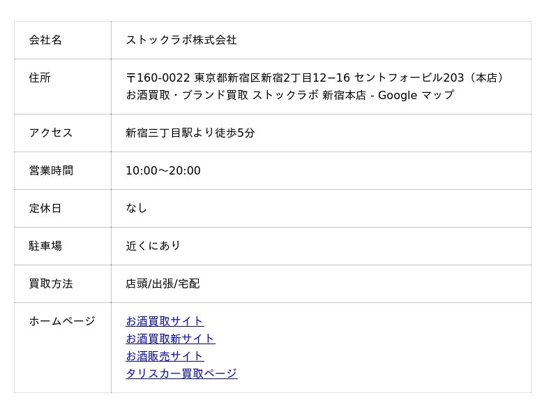 ストックラボは、多彩なウイスキーの銘柄を豊富に買取しており、タリスカーに関しても豊富な実績があります。公式サイトで公開している実績を見れば、その実力と信頼度は一目瞭然です。