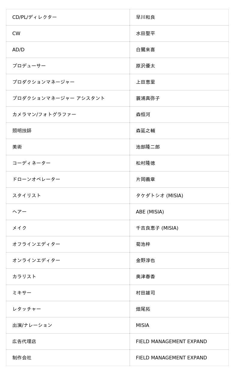 今回の新TVCMのテーマソングは「明日晴れるといいな」。撮影はまさにタイトル通りの晴天の下で行われました。監督を務める早川和良氏(FMX)の「今日も晴れですね!」という声で始まった撮影は、MISIAさんの歌声が響き渡る、とても”晴れやかな”現場となりました。