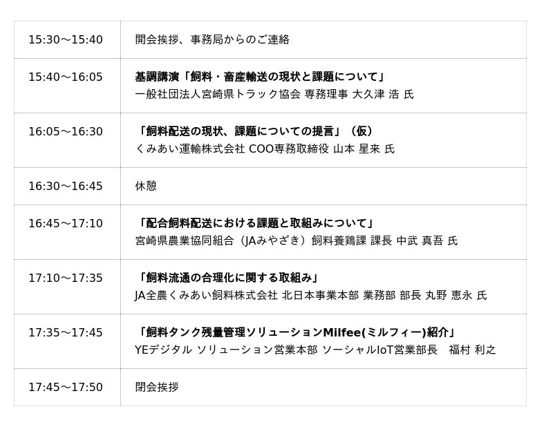 株式会社YE DIGITAL(本社:北九州市小倉北区、代表取締役社長:玉井裕治、以下、YEデジタル)は、この度、飼料メーカー、飼料配送業者、畜産農家の皆様を対象にしたセミナー『飼料流通合理化の最前線 ~現場の課題と改善のヒント~』を2025年9月17日(水)に開催いたします。