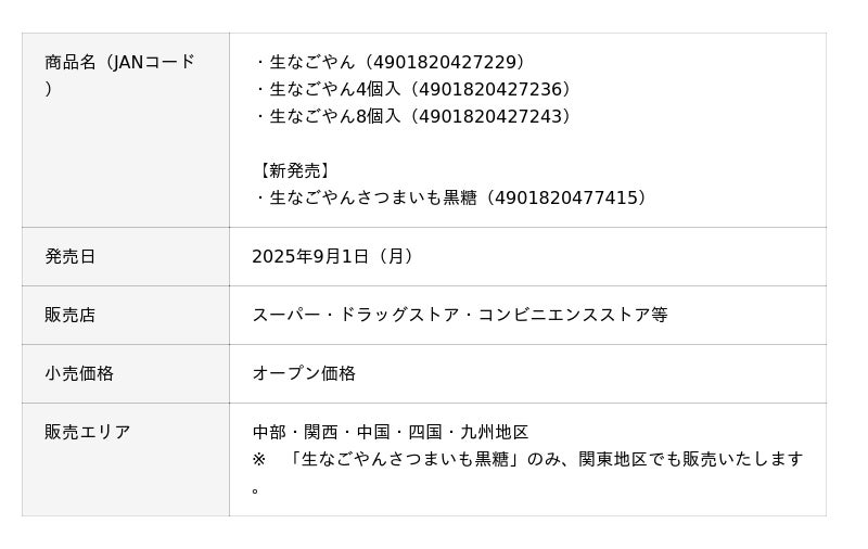 また、同日にシリーズ商品である「生なごやんさつまいも黒糖」を新発売します。