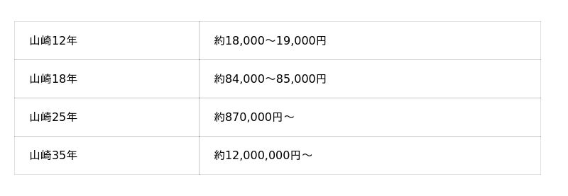 - 古いウイスキーや山崎ウイスキーの買取価格はどのくらいですか?