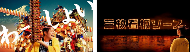 夏と聞いて思い浮かぶもの。そう、お祭り。だが、三枚看板ソースに生まれ変わった一平ちゃんによる”一平ちゃん祭り”は ひと味違う。本田翼さんが一平ちゃんを食べた瞬間、わっしょいわっしょいや、そーりゃそーりゃに変わる新しい祭りばやし「マヨ&ソース、マヨ&ソースです」が鳴り響く。すると、本田さんは祭りの世界にトランジット。次から次へと、夜店の焼そばが夜な夜ないざなう一平ちゃん 祭りの世界を巡ってゆく、屋台へ、やぐらへ、おみこしへ。最後は一平ちゃんを頬張る本田さんをスマホで撮影。これこそ、日本の新しい祭りの姿なのかもしれない。
