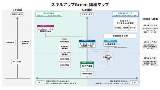 スキルアップNeXtは、「スキルアップGreen」でGXを体系的に学べる講座や、GX推進に必要な知識やスキルを測る「GX検定」で企業のGX推進をワンストップでサポートしています。