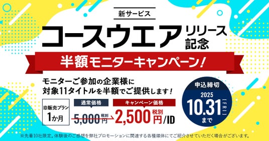コースウエアの提供方法、料金プラン、対象11コースの詳細等はキャンペーンサイトをご覧ください。