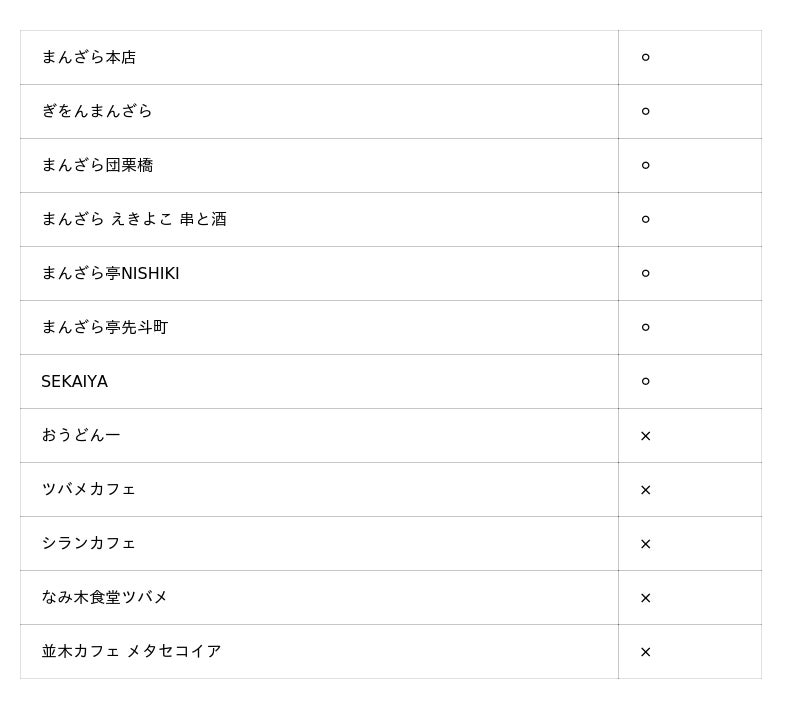 お食事券ご利用可能店舗