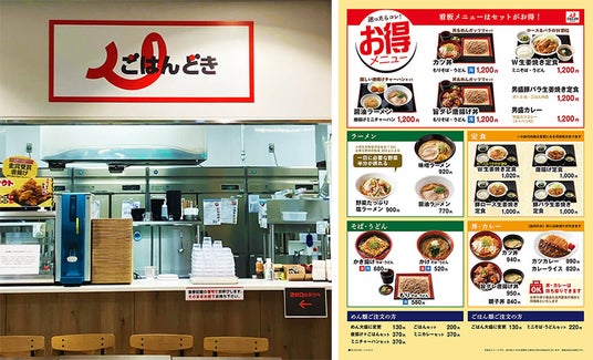 ごはんどき定食、丼、そば、うどん、らーめんを展開する和食主体の店舗。