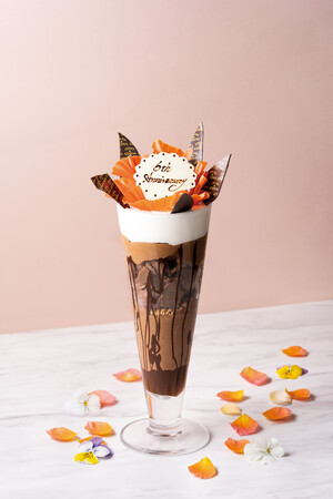 「ショコラ パルフェ 西武池袋本店6周年記念」は、チョコレートアイスクリームやミルクチョコレートプディング、食感の異なるクリスピープラリネやアーモンドなど、カカオの奥深さを1つのグラスに閉じ込め、上品なリボンチョコレートやダークチョコレートをあしらった西武池袋本店限定のショコラ パルフェです。