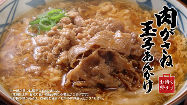 2023年1月に冬の人気商品であった『肉玉あんかけうどん』をバージョンアップし販売した『肉がさね玉子あんかけうどん』。