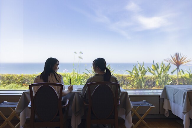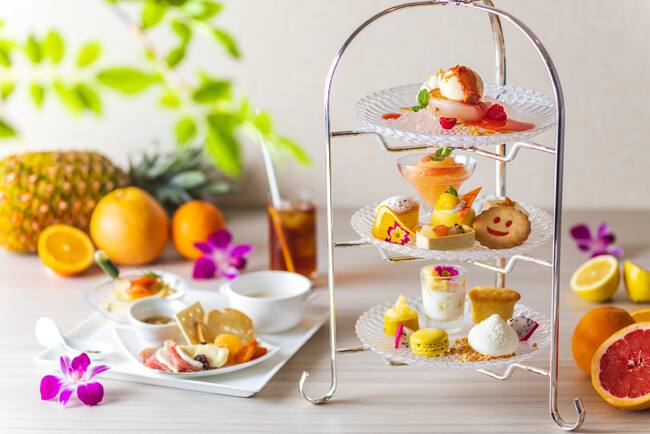 季節に合わせたアフタヌーンティーが楽しめるレストラン ル・トリアノンは湘南の海が目の前に広がる、絶景を堪能できるレストランです。これまで会えなかった友人やご家族などと過ごすことが多くなりそうな今年の夏。見るだけで笑顔になる、ビタミンカラーのスイーツが豊富に楽しめるアフタヌーンティーです。セイボリーには「チーズとドライフルーツの盛り合わせ」、「レモンパスタ バジルソースを添えて」など、甘いスイーツの間にも食べられ、程よくお腹も満たしてくれるバランスの良いセイボリーをご用意いたしました。夏本番を迎える湘南のリゾート鎌倉で、目の前に広がる絶景と、とっておきの夏時間を満喫するティータイムをゆっくりお楽しみください。