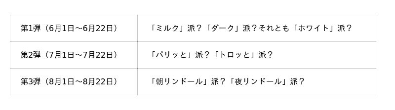本キャンペーンはWEBでは2025年6月1日(日)から8月14日(木)まで、全国の直営店では8月22日(金)まで実施。きっかけは、あるお客様から寄せられた心温まるお問い合わせでした。社内でも“リンドール論争”として大きな話題となったこの問いをテーマに、3ヶ月間にわたり全国投票を行いました。