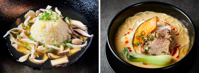 サバ麺/きのこの油淋鶏/きのこの餡かけチャーハン/かぼちゃ担々麺/鰆チャーシュー/梨の和え物/かぼちゃプリン/ウナギ麻婆豆腐/その他