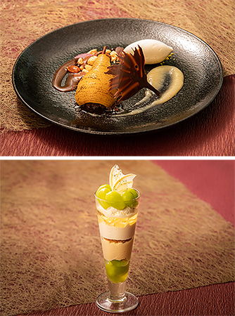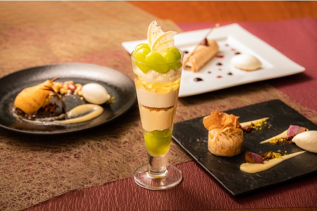 フレンチレストラン「ポム・ダダン」では見た目と味にこだわったデザート4品をご提供します。また、日本料理「大志満 椿壽」では、実りの季節ならではの特別懐石をご用意します。さらに、鉄板焼処「大安くらぶ」のディナーコースは、食通に愛される“神戸牛”の味や食感はもとより、焼き上がりの香りや音までもご堪能いただけます。