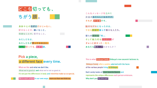 「渋谷飴」が、多くの人の手に渡り、まだ見ぬ知らない人やまちへの興味を生み、友達や家族との会話が生まれるきっかけになってくれたら嬉しいです。渋谷の人々の魅力的な「ちがい」がぎゅっと詰まった一粒を、ぜひ味わってみてください。