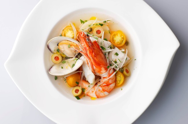 大阪近郊の海で育った新鮮な魚介で作るフランスの郷土料理ブイヤベース。香ばしくカリっと焼いたガーリックトーストを、素材の旨みが十分に溶け出したスープに浸してお召し上がりください。