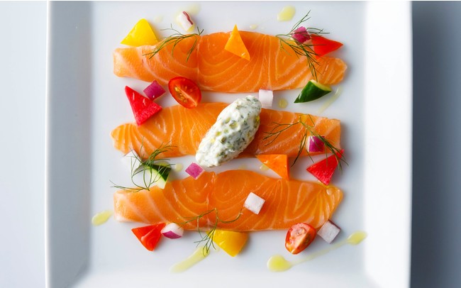 ビュッフェの定番であるサーモンのマリネを、脂がのり、ほのかな甘みが特徴のノルウェーサーモンを使用し関西近郊でとれた新鮮な野菜を麹を使ったヘルシーで爽やかなピクルスにして合わせました。