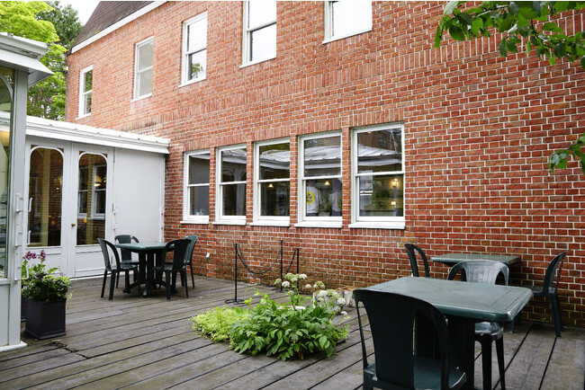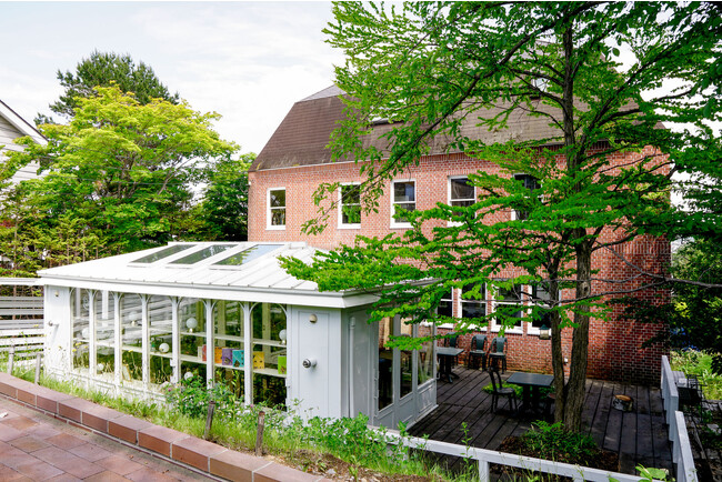 北海道産のレンガで作られた洋館と、光溢れるコンサバトリー(イギリス風サンルーム)が素敵な空間を演出します。夏季限定で、ウッドデッキやレンガテラスもご利用いただけます。
