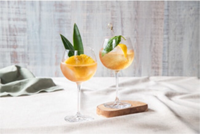 「シャンドン ロゼ」に、世界最高級のテロワールから厳選されたネーブルオレンジやブラッドオレンジの果皮を乾燥させ、ハーブやスパイスとともに浸漬させる独自のレシピでつくられた「ビターズ」がブレンドされています。