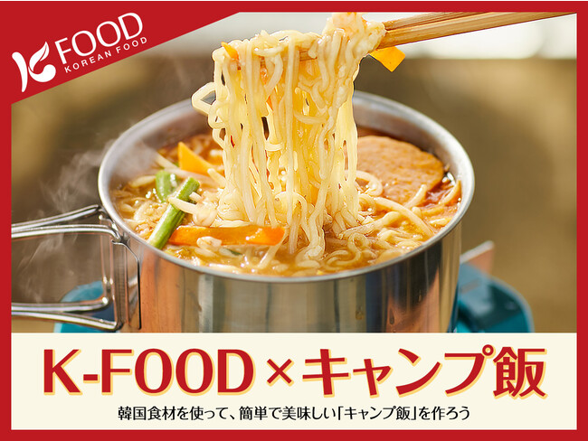 韓国農水産食品流通公社(大阪支社:大阪市中央区)は、たくさんのキャンパーの皆様にキャンプでK-FOODを楽しんで欲しいと思い、「K-FOOD×キャンプ飯」を支援する様々なキャンペーンとイベントを開催いたします!従来からのキャンパーはもちろん、ソロキャンプやキャンプ女子など多様な楽しみ方が生まれたキャンプ。そんなキャンプの醍醐味の一つが料理。野外で食べる「キャンプ飯」は格別ですよね。でも色々準備が大変。キャンプ場の設備や所有しているキャンプグッズに関係なく、手軽で美味しく、後片付けも楽にできたらいいですよね?ラーメンをはじめとする韓国食材なら、誰でも手軽に「キャンプ飯」を思いっきり楽しんでいただけます。