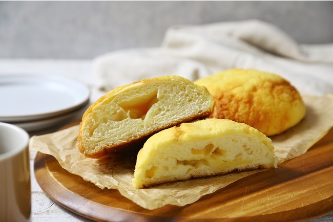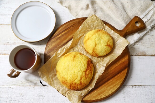 「黄金のメロンパン」(右上)と比べて約2倍のスペシアルなサイズに思わず笑顔が溢れるメロンパン。卵黄仕立てのさっくりとしたメロン皮と、生地に包み込んだバター。素朴でありながらもコク深い味わいが人気の秘訣です。バターを塊のまま生地に包み込み焼き上げているため、じゅわっと染み込むバターの味わいを存分にお楽しみいただけます。