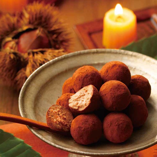 栗の風味豊かなクリームを、限定の生チョコレート[栗]で包んだ贅沢な味わいのトリフです。食感のアクセントとして、さくさくとしたフィアンティーヌを入れています。なめらかで口どけがよく、食べた瞬間から栗の風味がふわっと香り、味わうほどに深まります。