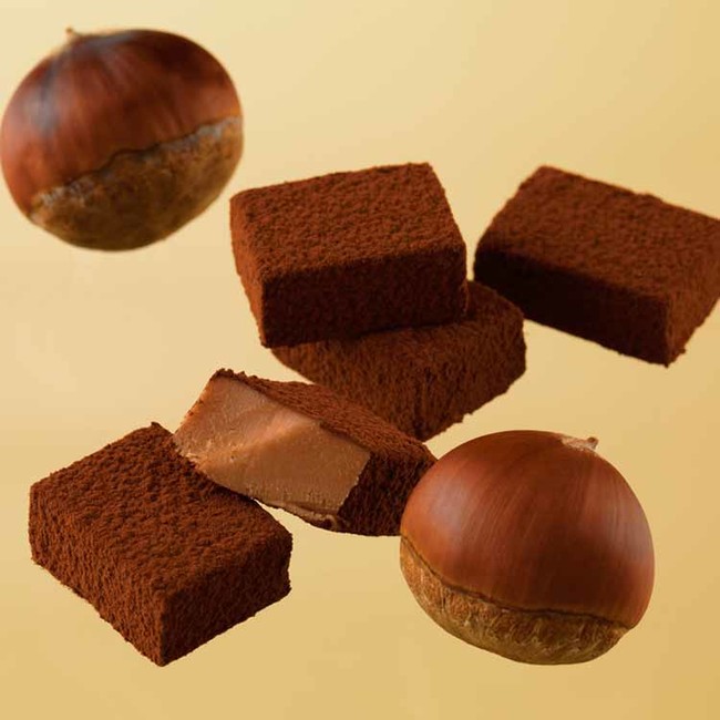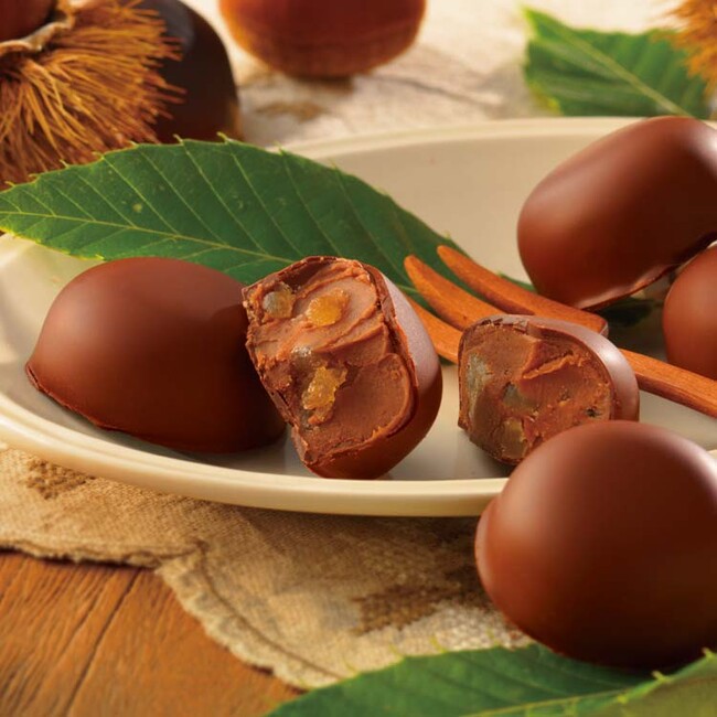 栗の風味豊かな繊細なチョコレートの中に、栗風味のコクがあるソースを閉じ込めました。ひと口食べると、中からとろりとソースがあふれ出します。香ばしい風味とコクのあるまろやかな甘さ、栗のおいしさに心まで満たされるショコラです。
