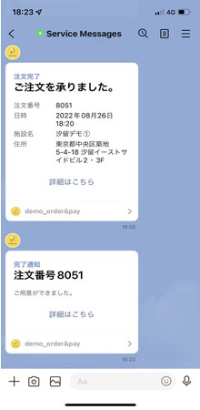 LINE経由の注文・調理完了通知で受取情報の確認もスムーズ