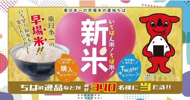 千葉県産米需要拡大推進協議会(代表者:林 茂壽、事務局:千葉県農林水産部流通販売課/キャンペーン事務局:オニオン新聞社)は、2022年8月下旬~11月4日までの約3ヵ月間、各販売店やオンラインショップにて「応募シール」が貼ってある千葉県産新米をご購入いただいたお客様の中から、抽選で310名様に千葉県の逸品などをプレゼントする「いちばん米!ちば米!新米キャンペーン」を開催いたします。また、公式Twitterをフォロー&リツイートいただいた方にも、抽選で30名様に千葉県産米食べ比べセットをプレゼントする「Twitterキャンペーン」も2022年10月31日まで併開催します。